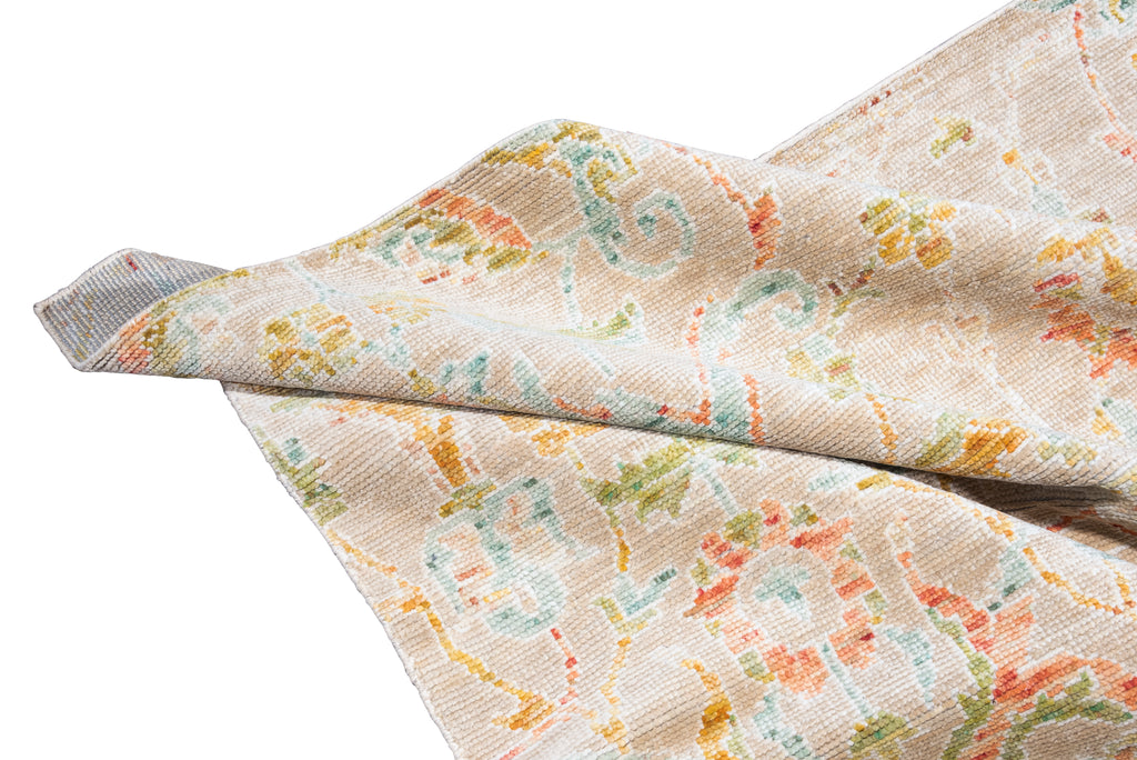 Easy on the eye with a soothing base and multi coloured pattern, our Abir carpet is the perfect fit for cosy, transitional spaces.