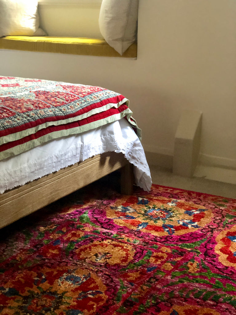 Our take on a contemporary Suzani, the Cava carpet in Popsicle Fuchsia is sure to bring happiness and joy to any space it adorns, with its bright colours and unique upcycled sari silk yarn. For the floor or as a hanging on a wall!