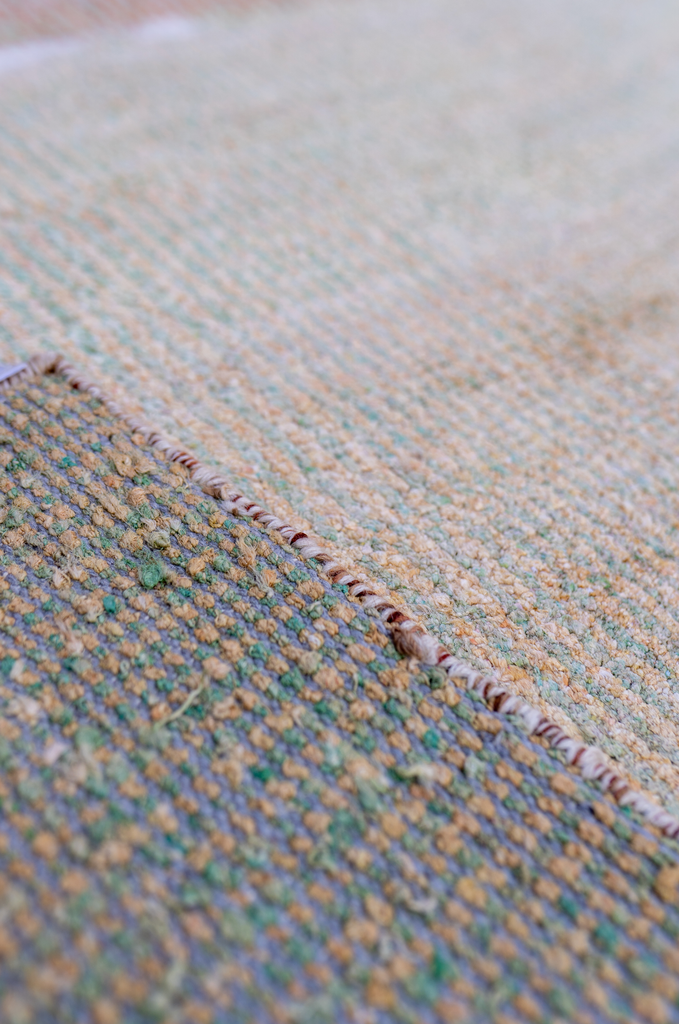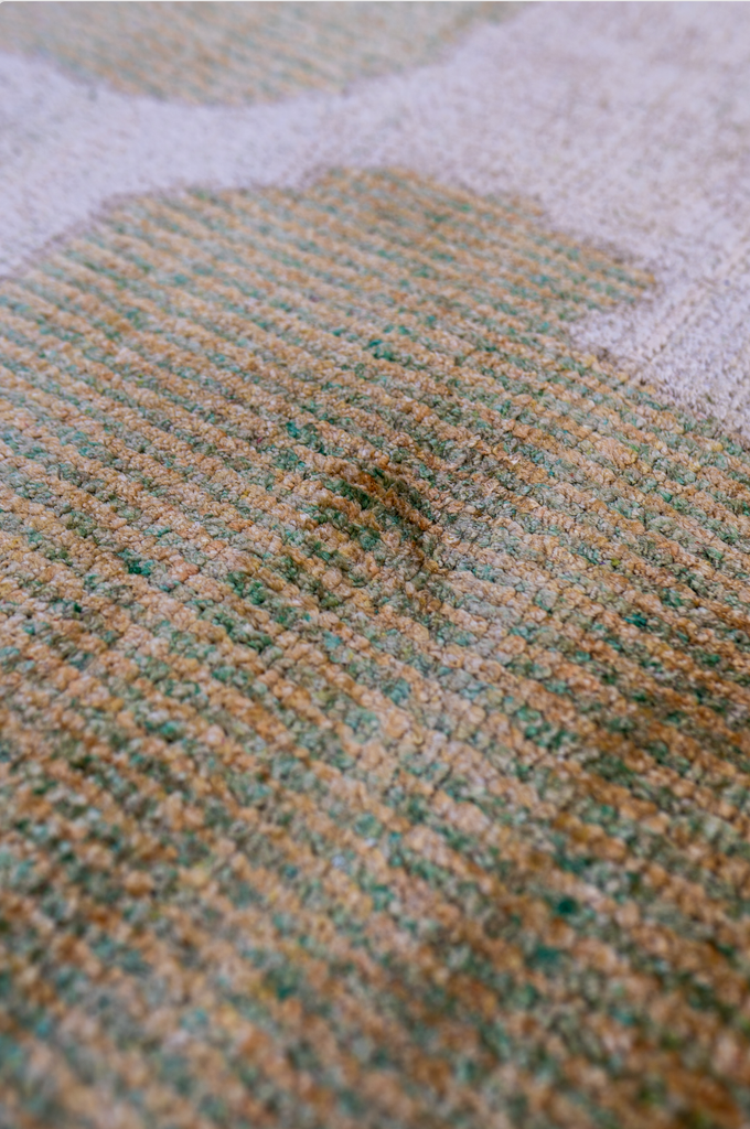 Our very painterly Chartreuse carpet. Cleverly composed with contrasting stripes in soft, calming tones.