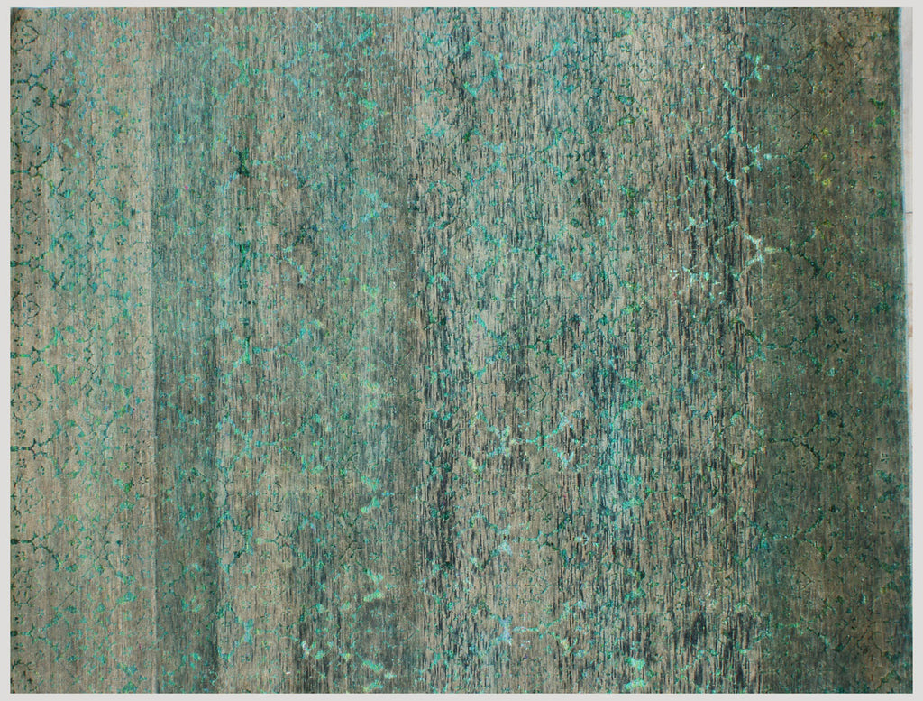 Inspired by delicate lace patterns, our Damask carpet intertwines intricately woven sari silk flawlessly within its hand knotted wool cocoon.