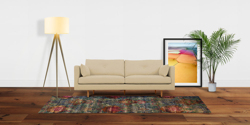 To ensure great condition, vacuum regularly with a smooth metallic head with a slit suction instead of a brush. Dampness should be avoided completely. For hard-to-remove stains professional care is recommended. Each one-of-a-kind item will feature unique yarn variations, which is a part of the charm of the rug.
