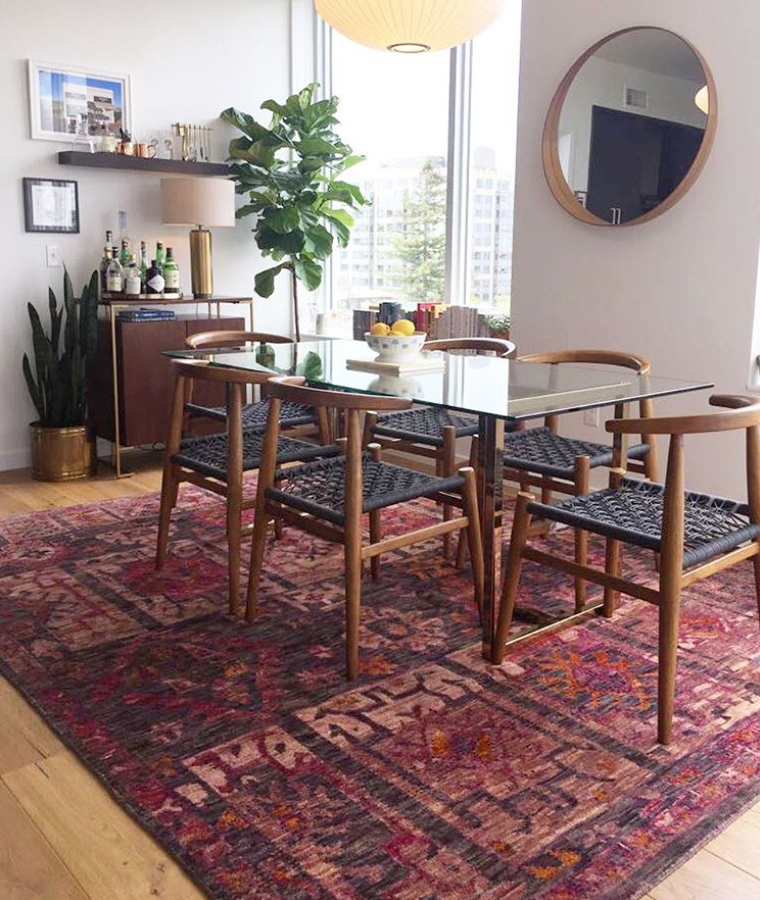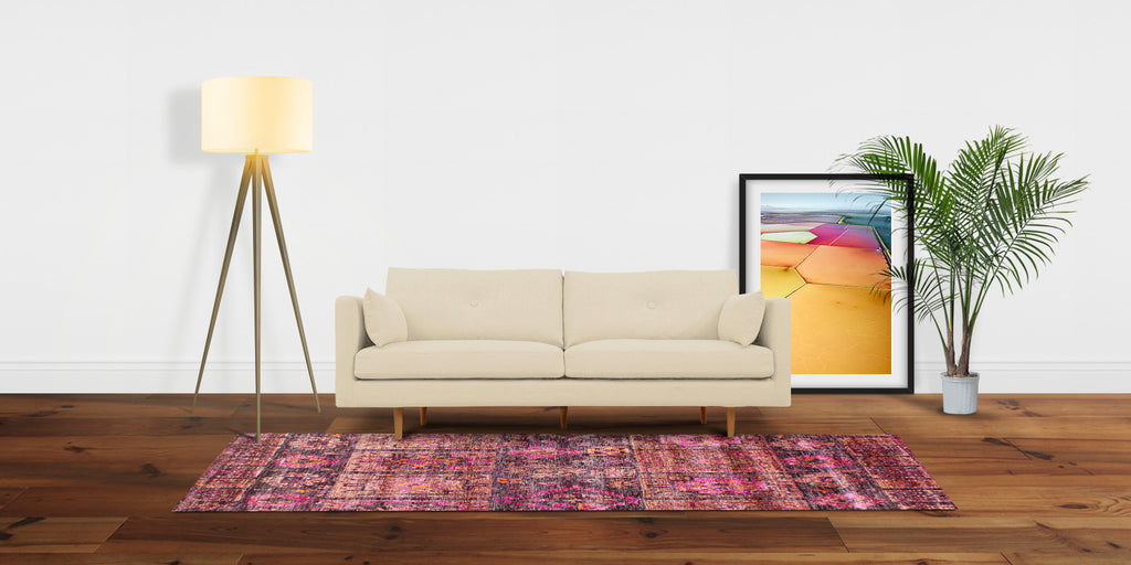 Our kilim- inspired Guja carpet is perfect for any traditional, transitional or contemporary space alike. Versatile and flawless in its Rose Wood avatar with the perfect hints of Fuchshia and Powder Mauve.