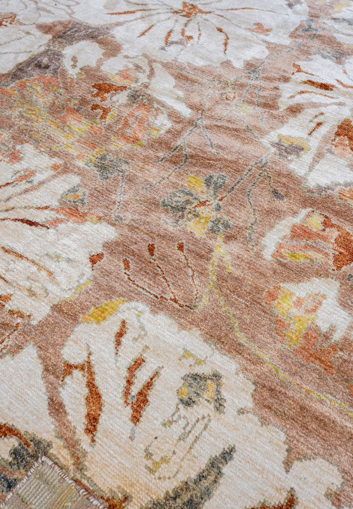 A beautiful reverse erase pattern, etched in signature Mishcat silk. A garden for your floor.
