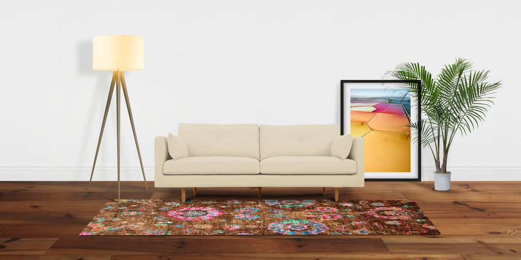 One of our most vividly colourful carpets yet, our Roja is a vision with its solid Teak base, made to come alive with bursts of Fuchshia, Magenta, Turquoise, Emerald, and Tangerine, all dancing and swaying in colourful floral vigor.