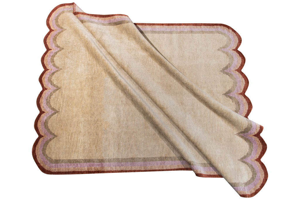 The Squiggle is one of our most captivating rugs, combining whimsical design with sophisticated style. Its defining feature is a unique wavy border that ebbs and flows around the perimeter, reminiscent of gentle waves or playful doodles.