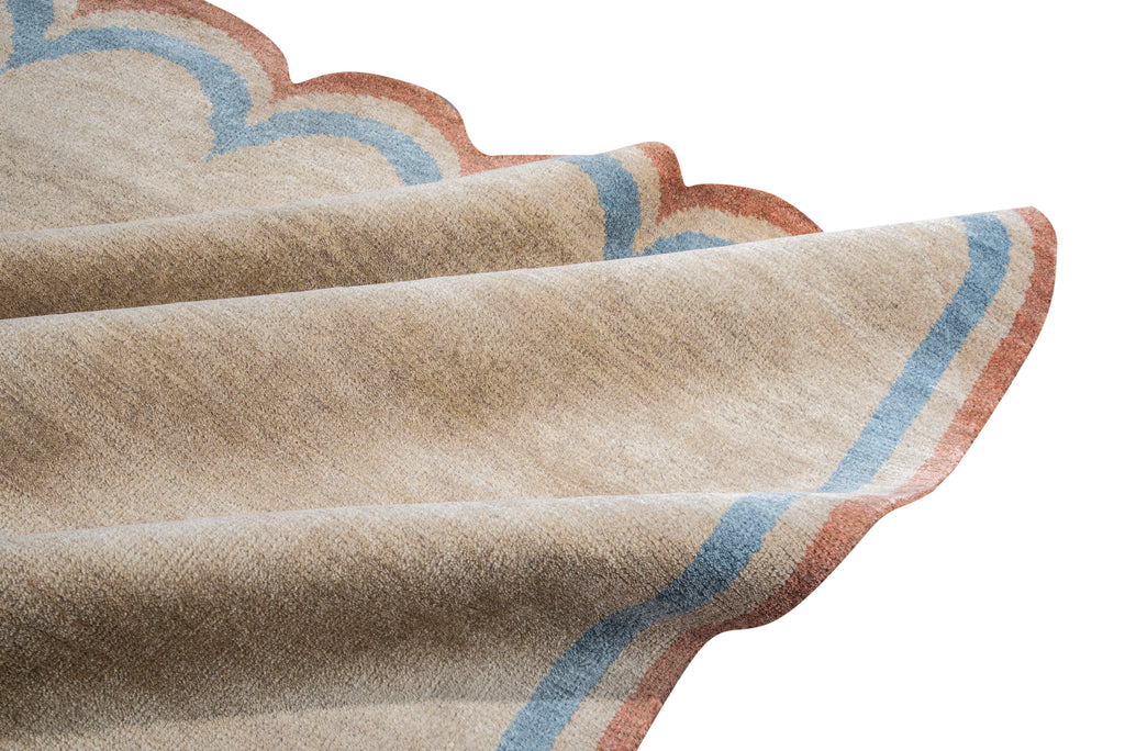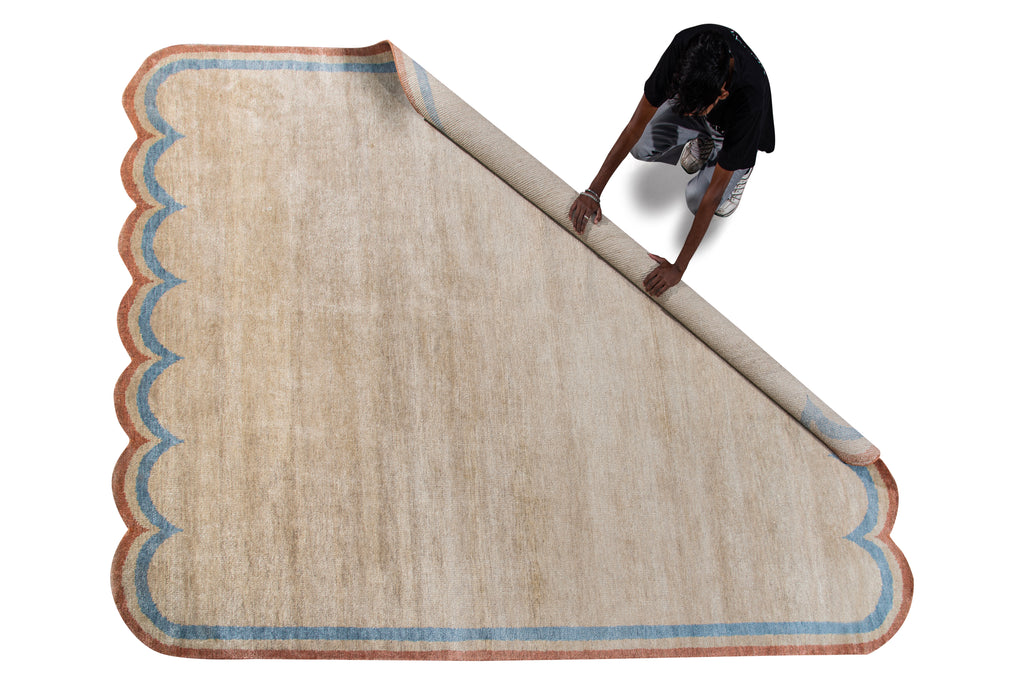The Squiggle is one of our most captivating rugs, combining whimsical design with sophisticated style. Its defining feature is a unique wavy border that ebbs and flows around the perimeter, reminiscent of gentle waves or playful doodles.