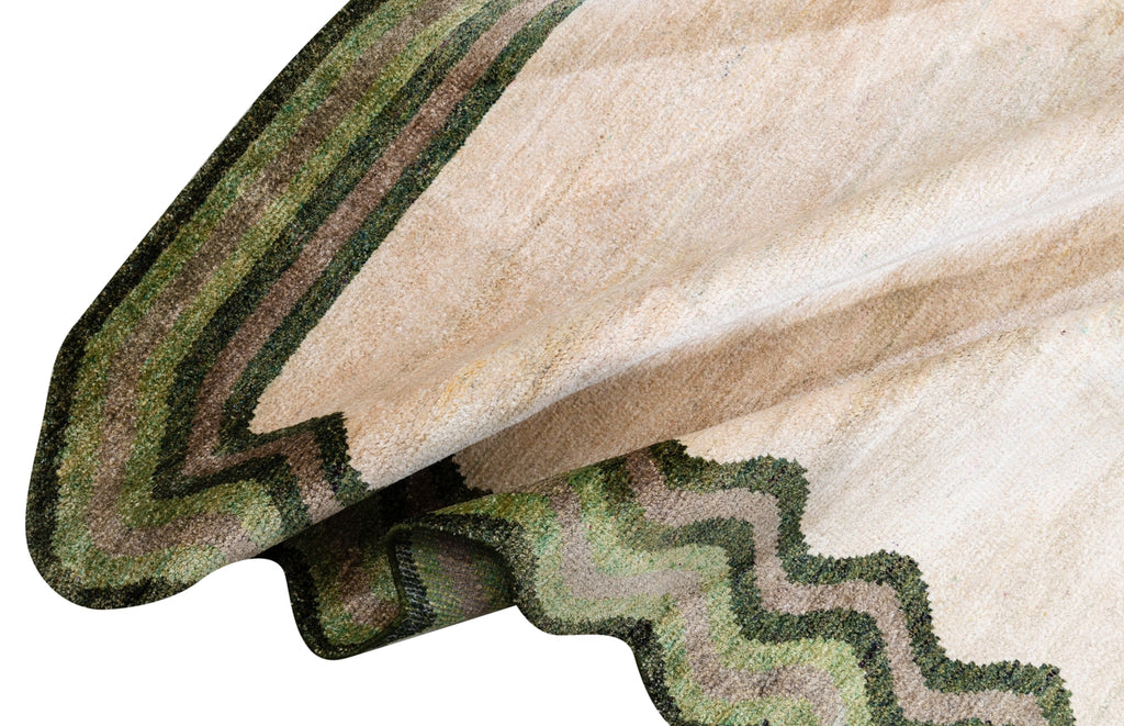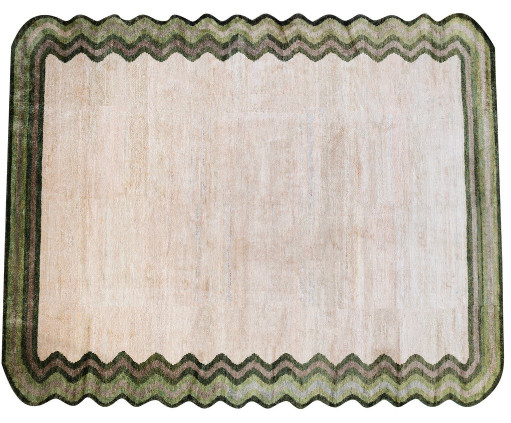 The Squiggle is one of our most captivating rugs, combining whimsical design with sophisticated style. Its defining feature is a unique wavy border that ebbs and flows around the perimeter, reminiscent of gentle waves or playful doodles.