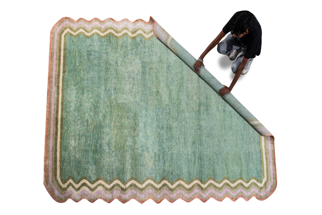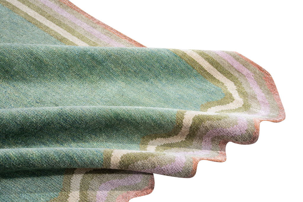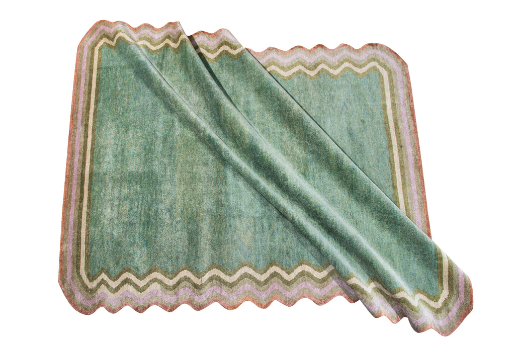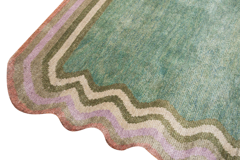 The Squiggle is one of our most captivating rugs, combining whimsical design with sophisticated style. Its defining feature is a unique wavy border that ebbs and flows around the perimeter, reminiscent of gentle waves or playful doodles.
