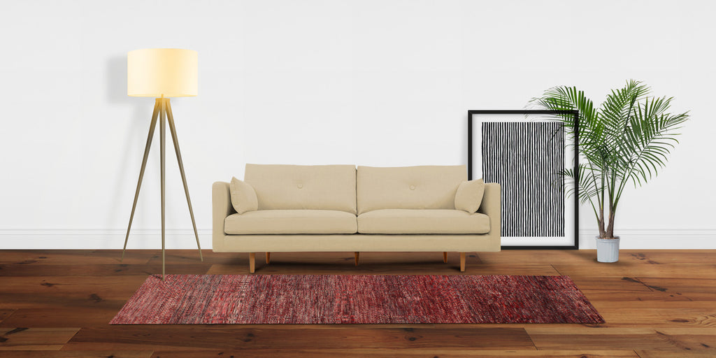 To ensure great condition, vacuum regularly with a smooth metallic head with a slit suction instead of a brush. Dampness should be avoided completely. For hard-to-remove stains professional care is recommended. Each one-of-a-kind item will feature unique yarn variations, which is a part of the charm of the rug.